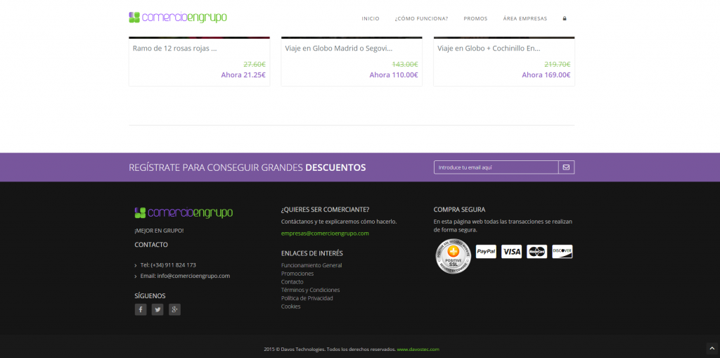 Conscientes de las grandes carencias que presenta el comercio local en España para el acceso a las nuevas tecnologías y la venta por internet, Davos Technologies lanza su plataforma de compras colectivas (Comercio en Grupo), que a día de hoy opera en las principales ciudades.