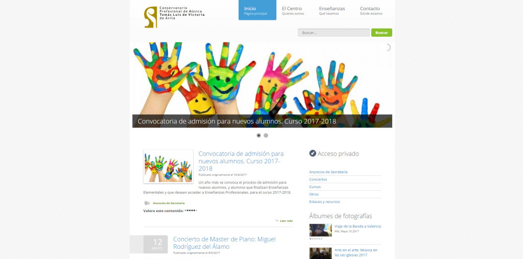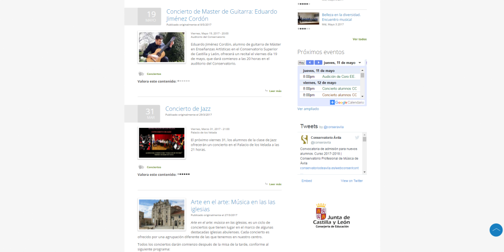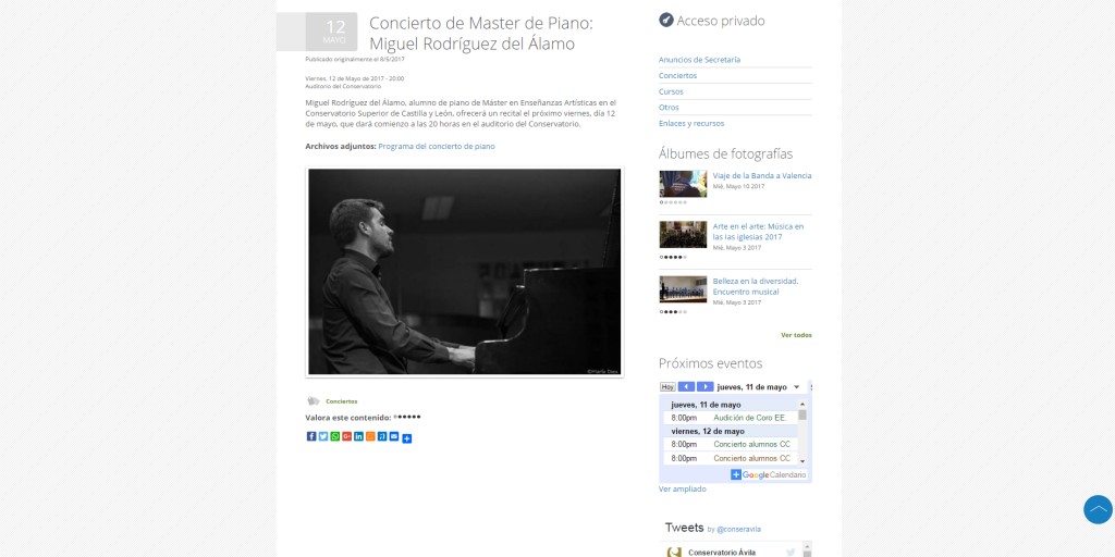 Esta web creada para el conservatorio profesional de música de Ávila incorpora: